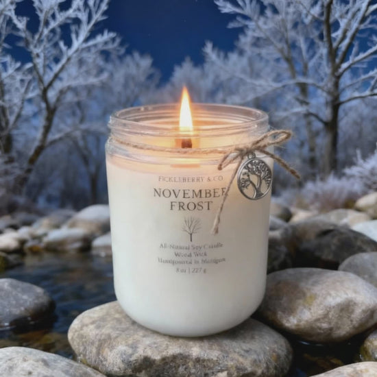 November Frost All-Natural Soy Candle · Wood Wick · 8 oz