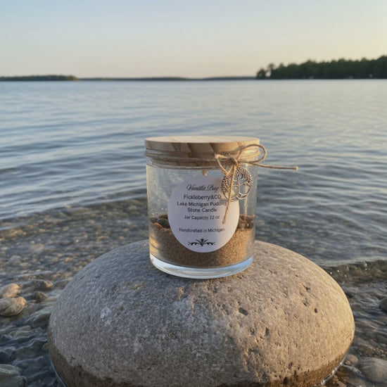 Found along the quiet shores of Lake Michigan, pudding stones are nature’s mosaic—each one a speckled memory of tide and time. This candle honors their earthy beauty with a smooth Vanilla Bay scent: warm, creamy, and kissed with coastal calm.